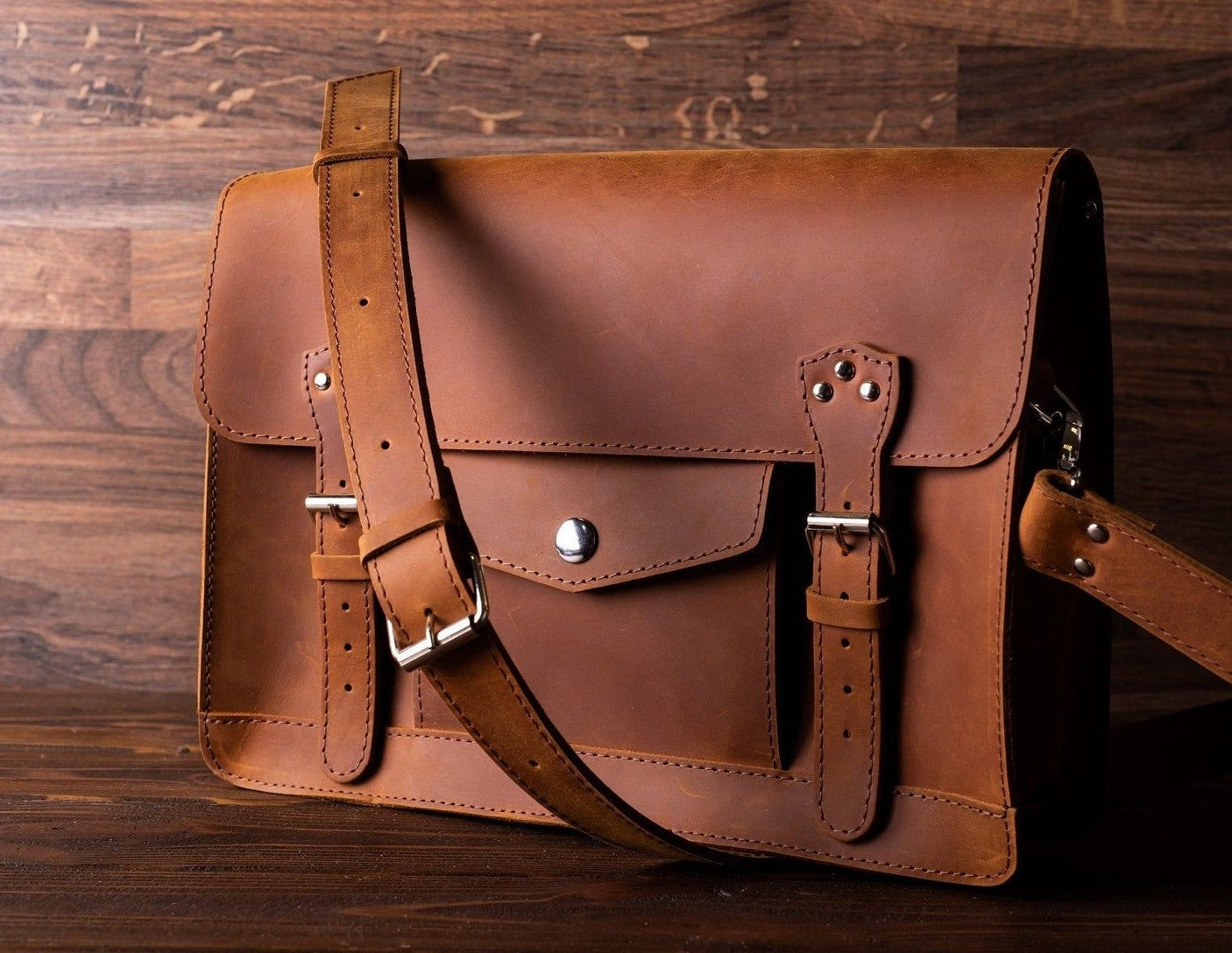 Ashwood Mens Medium Leather Messenger Bag Oscar Tan