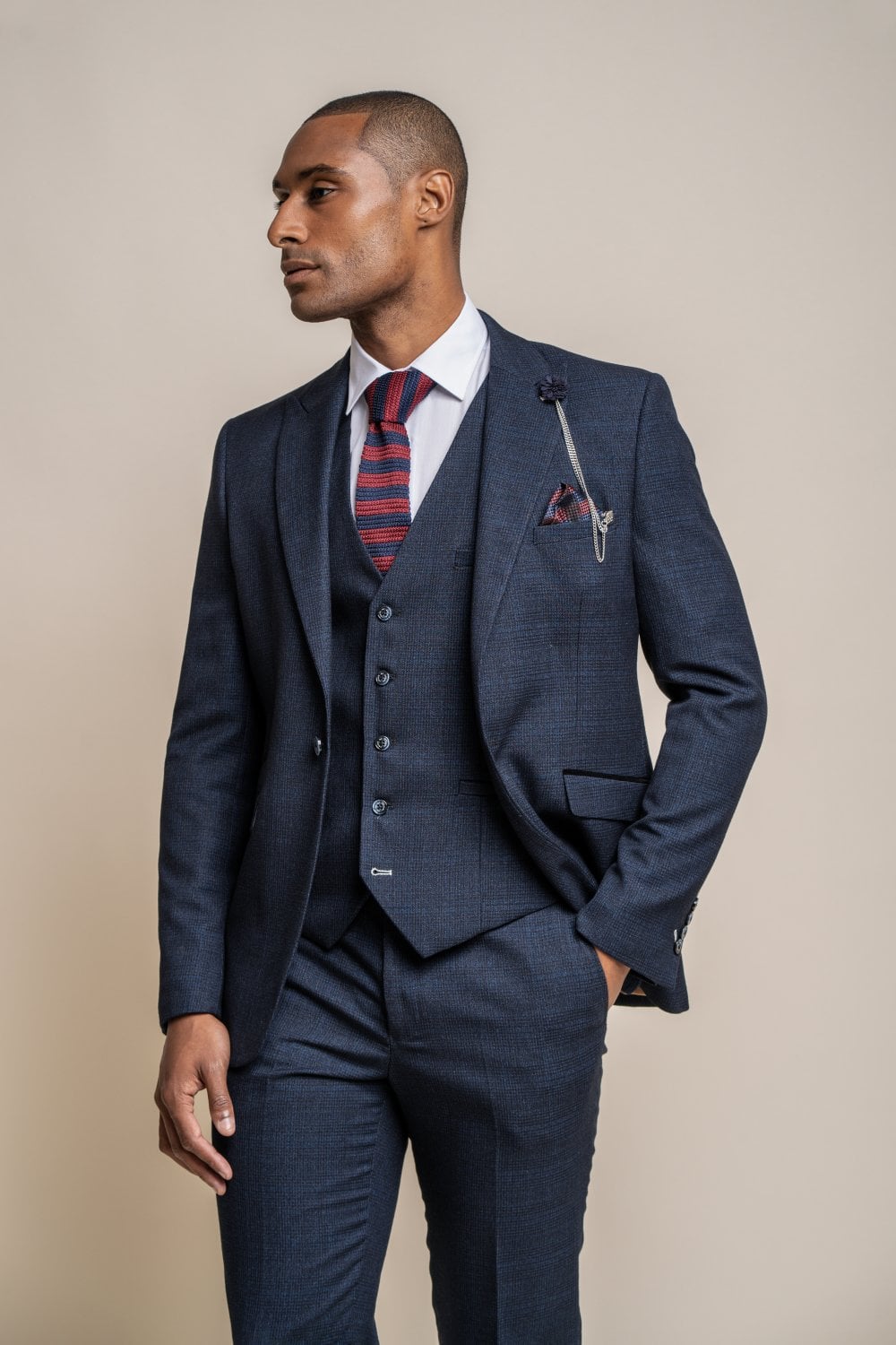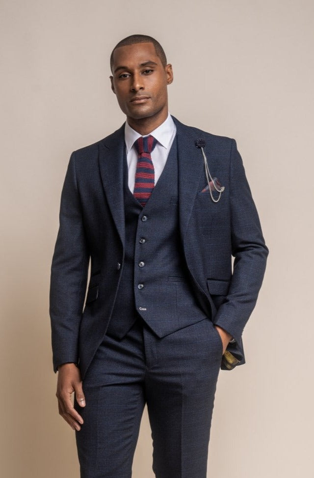 The Caridi Navy Blazer from HOUSE OF CAVANI is the perfect blend of style and comfort. Made from finely-crafted, quality materials, this blazer features a classic navy colour palette that easily pairs with any ensemble for a professional look.
